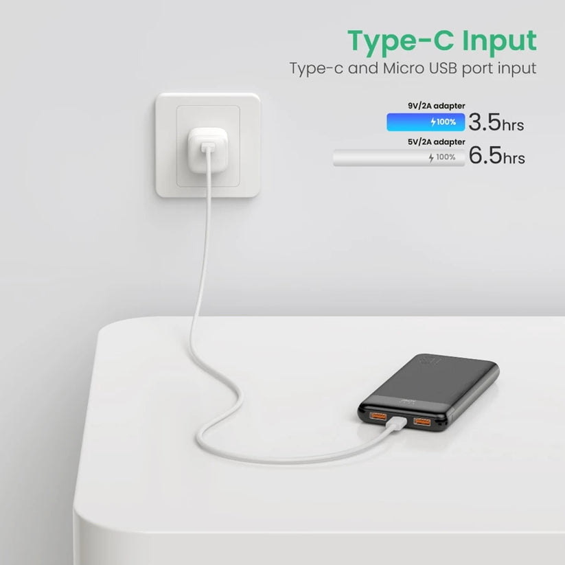 - Input port: 2 ports, Micro USB and Type-C.