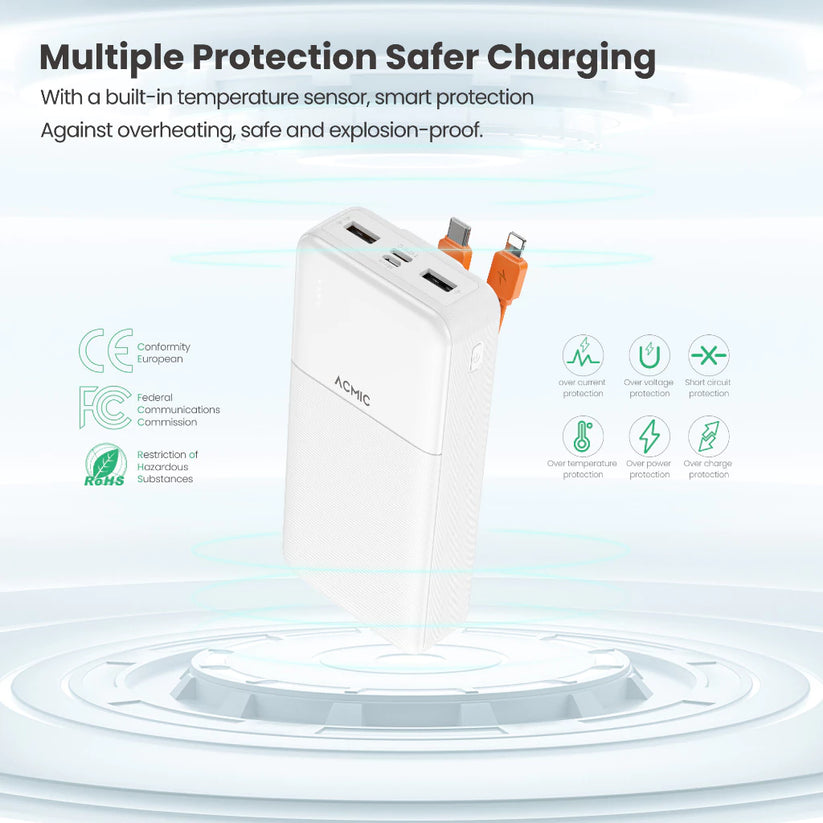 ACMIC 20000mAh powerbank with build-in Type C and Lightning Cable (AP20-06 (W2010C)