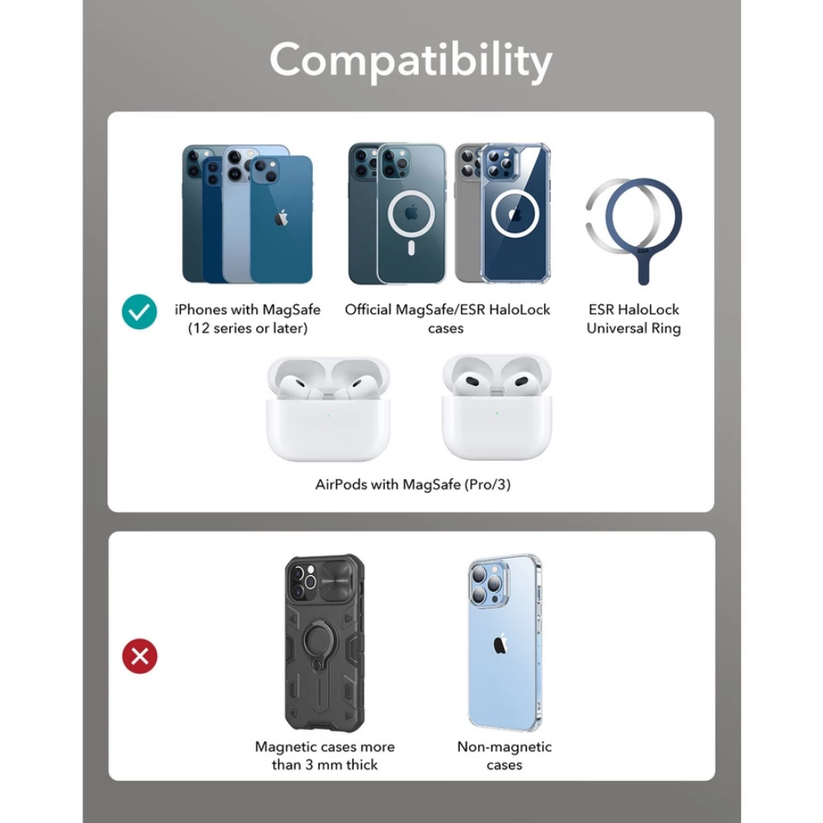 ESRHaloLock Wireless Power Bank is a compact and versatile gadget that offers three functions in one, including a power bank, wallet, and stand, which is specifically designed for iPhone users to provide them with an easy and convenient way to charge their phones, carry their cards, and hold their phones upright.