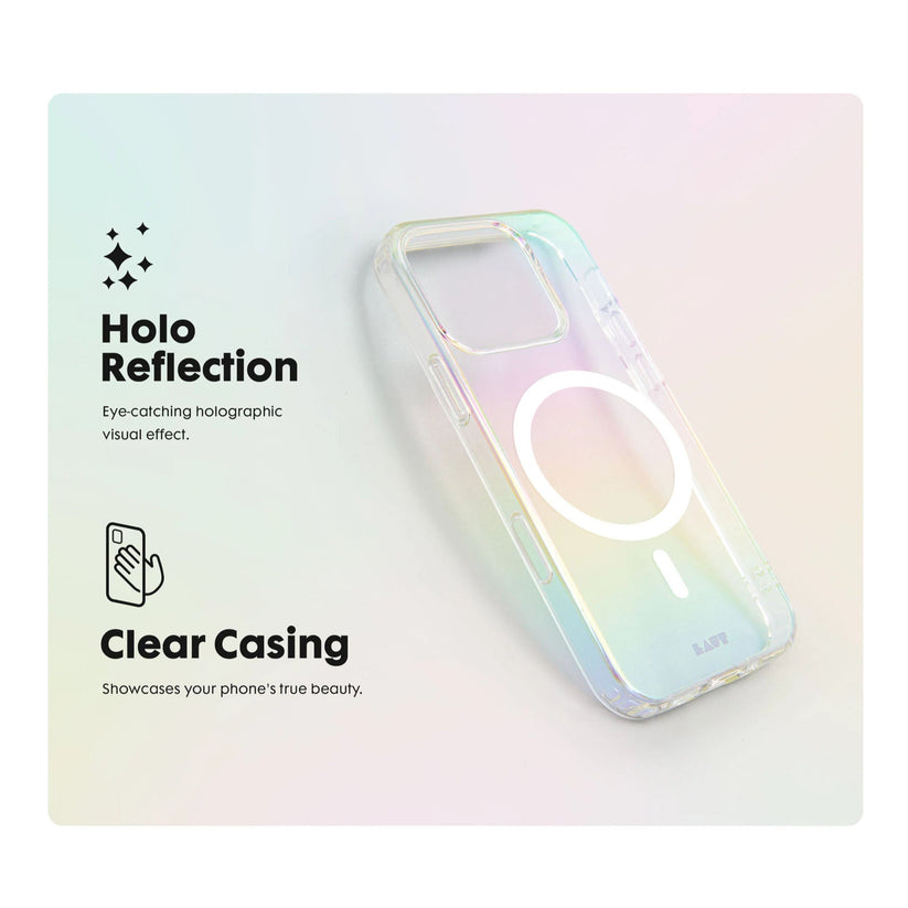 HOLO for iPhone 16 is designed to captivate and mesmerize. The case features a stunning holographic design that catches the light from every angle, creating a breathtaking display of iridescence. HOLO not only offers exceptional durability and protection but also serves as a statement piece that elevates your style for any occasion. With MagSafe® compatibility, this case ensures seamless recharging and effortless use with MagSafe® accessories, making it a perfect fusion of function and dazzling aesthetics.