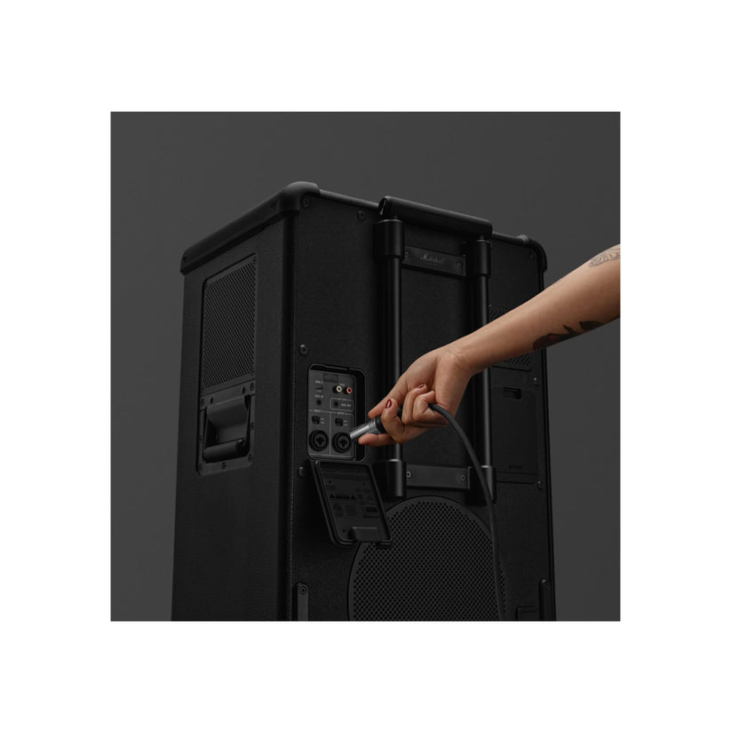 Start the party without an entourage. Bromley 750 is fully transportable thanks to its wheeled design and retractable handle. Tilt and use the wheels to roll it then use the side handles to lift it into place.