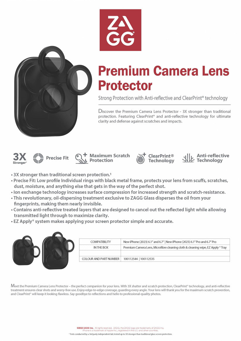 ZAGG Glass Premium Camera Lens Apple iPhone 15 Non Pro Series - Black